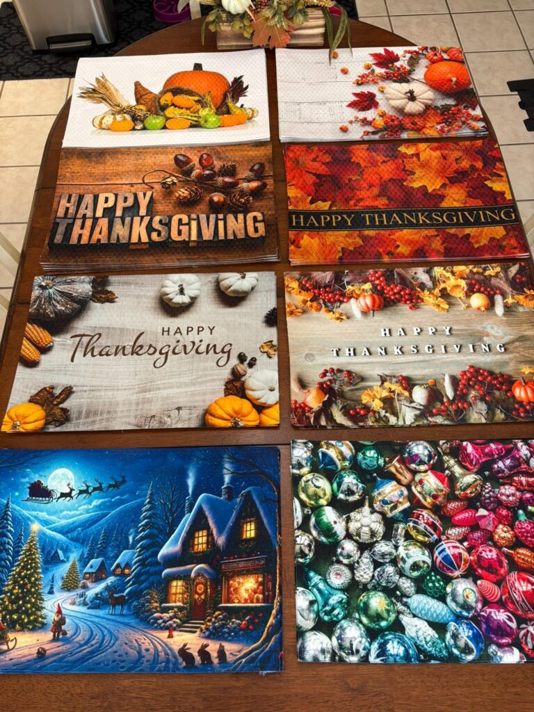 Happy Thanksgiving Placemat With Fall Leaves – Machine Washable Tumble Dry – Seasonal Dining Decor