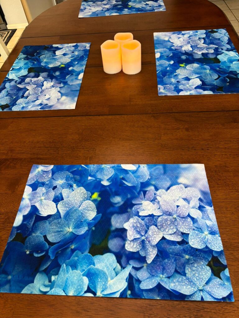 Blue Hydrangea Placemat for Your Dining Room Table Machine Washable Tumble Dry Unique Upscale Dining Room Decor