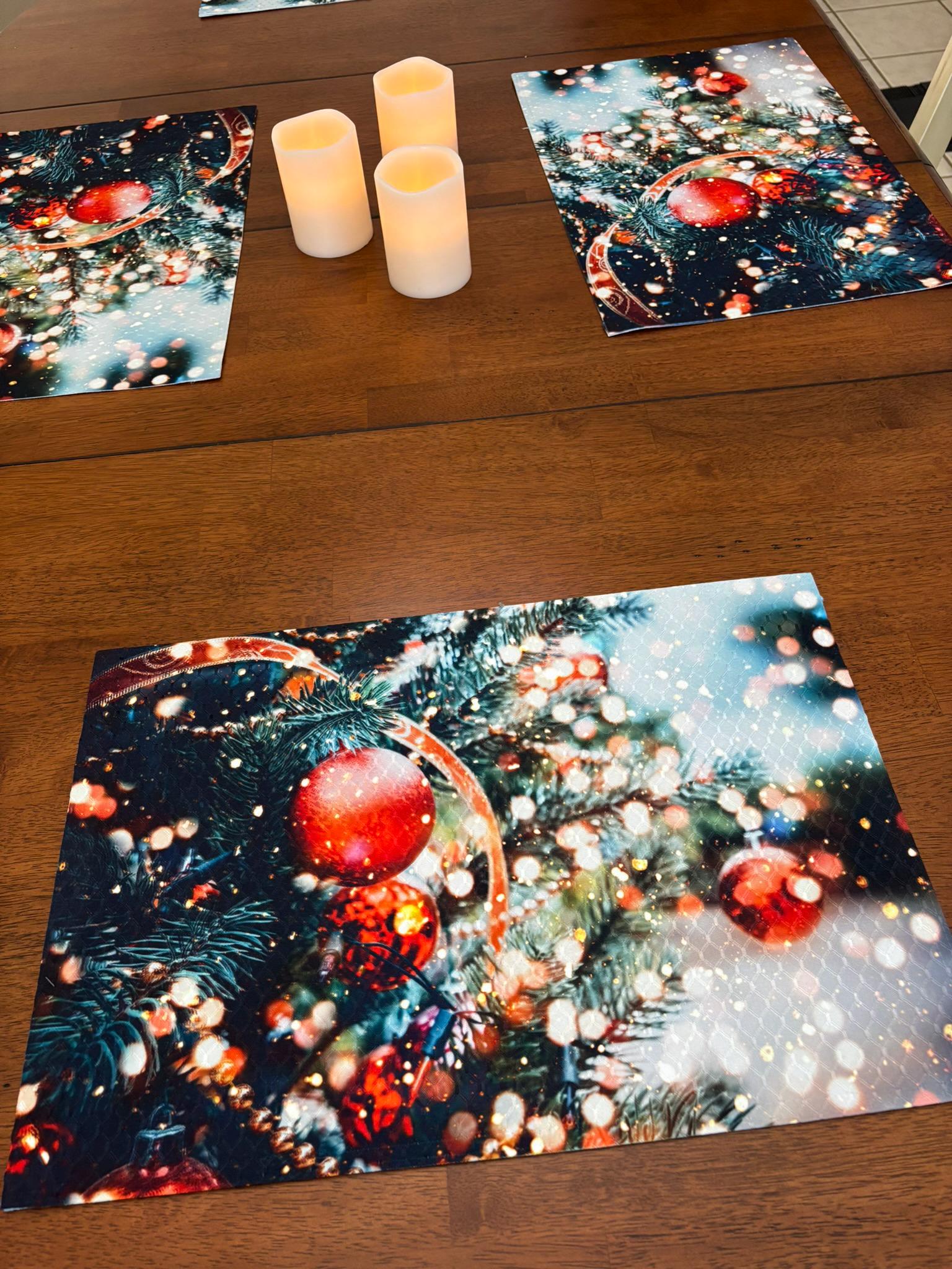 Christmas Tree Branches Decorated with Garland and Ornaments Placemat Dining Table Machine Washable Tumble Dry Upscale Dining Room Decor