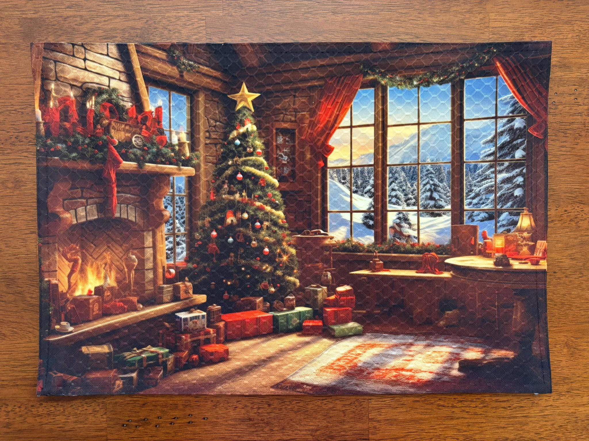Christmas Tree by Window Snow Outside Placemat – Machine Washable Tumble Dry – Seasonal Dining Decor