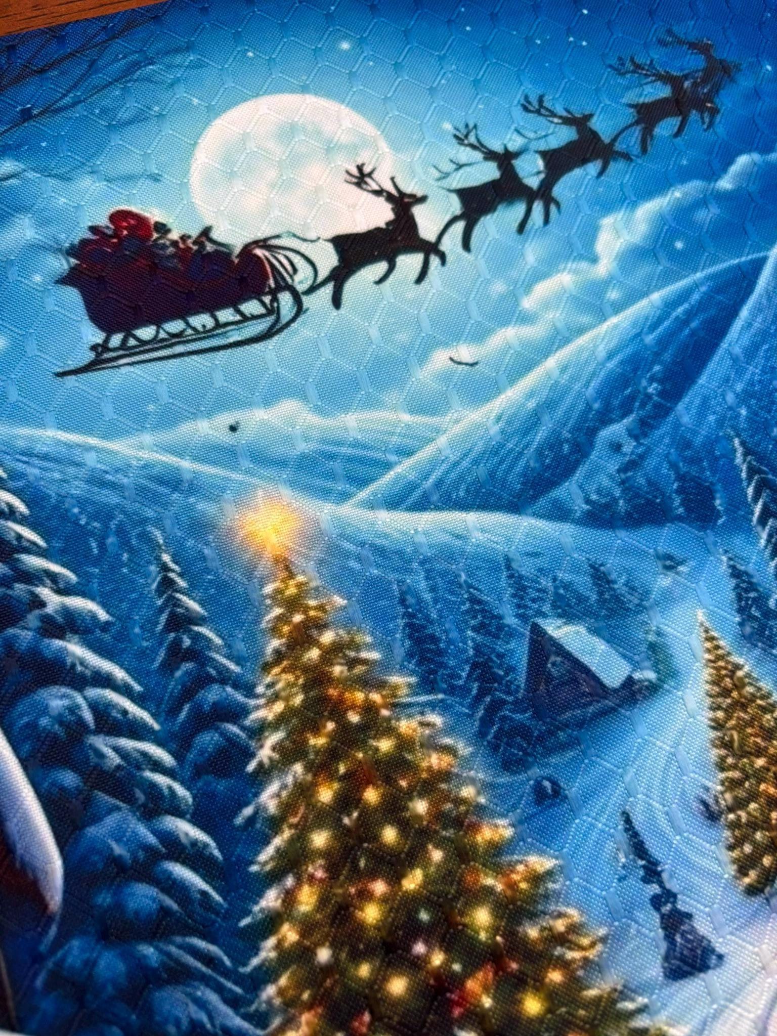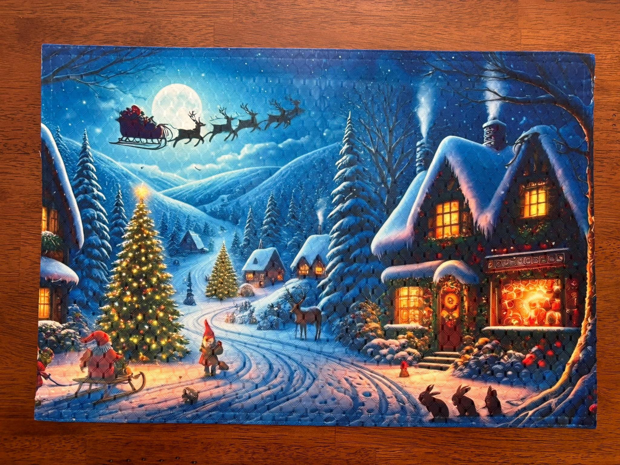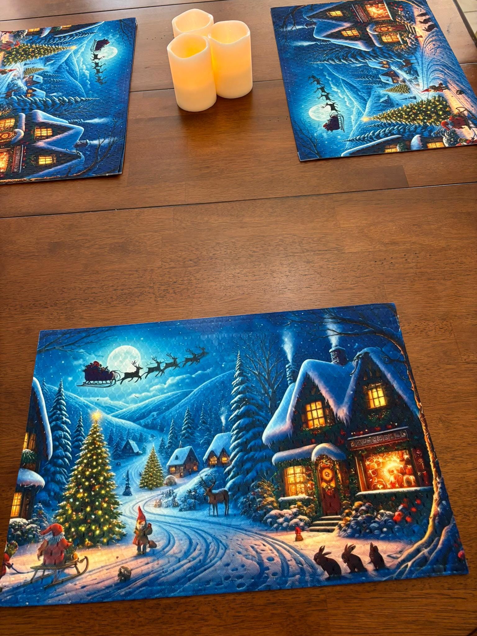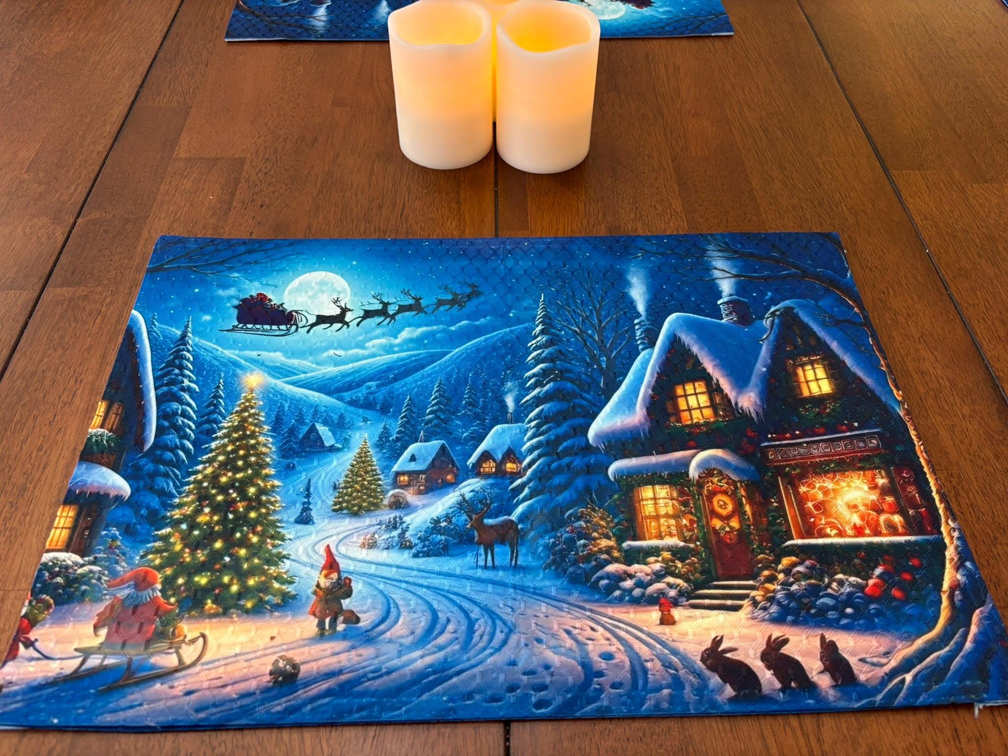Christmas Village Snow Scene Santa in Flight Placemat Machine Washable Tumble Dry Christmas Decor for Dining Room Table