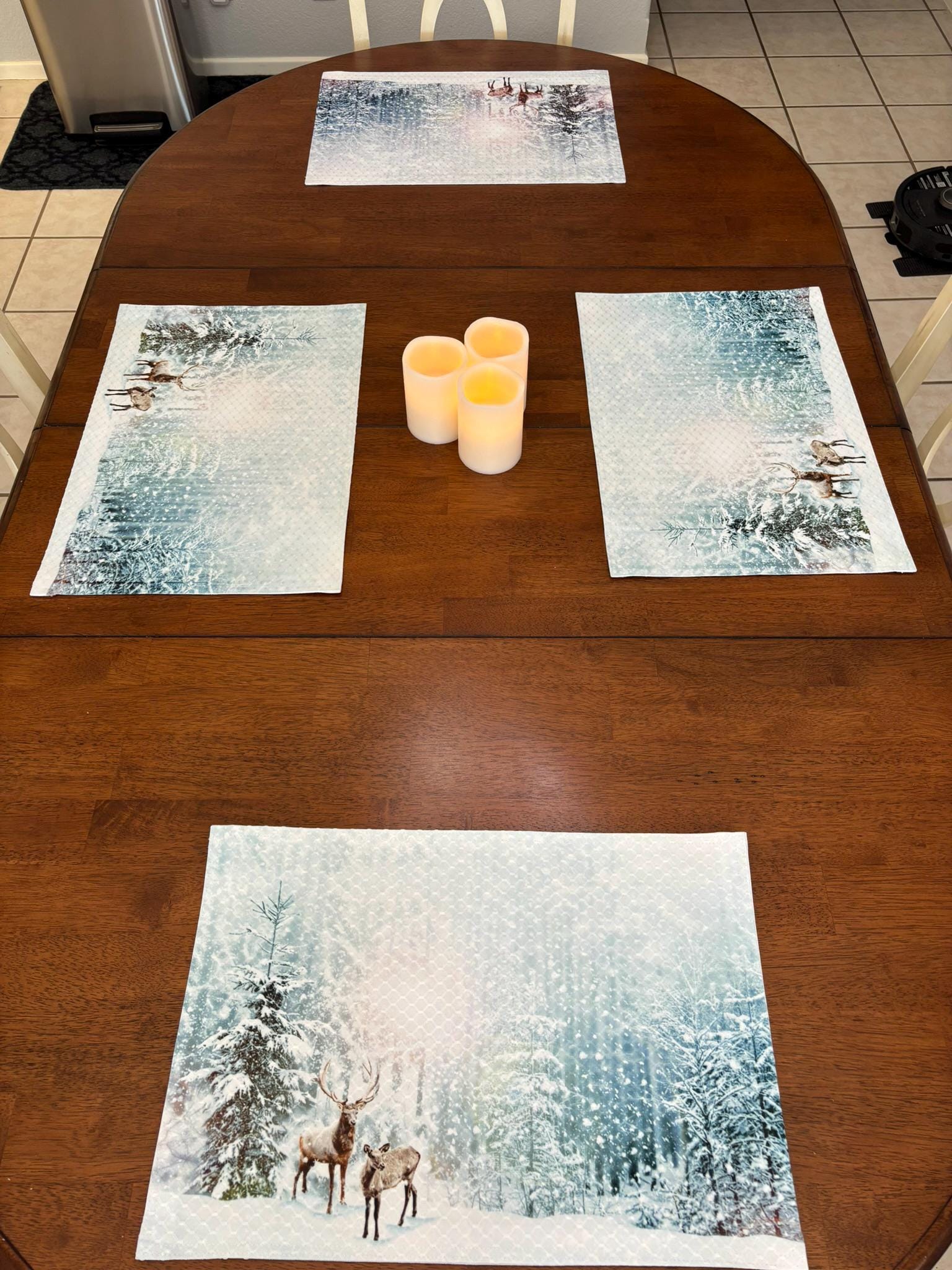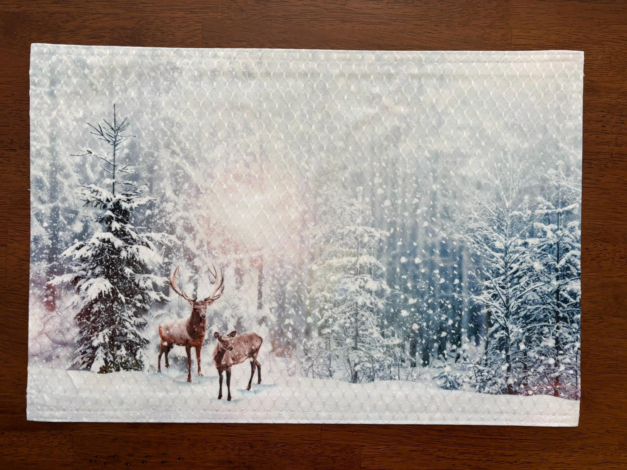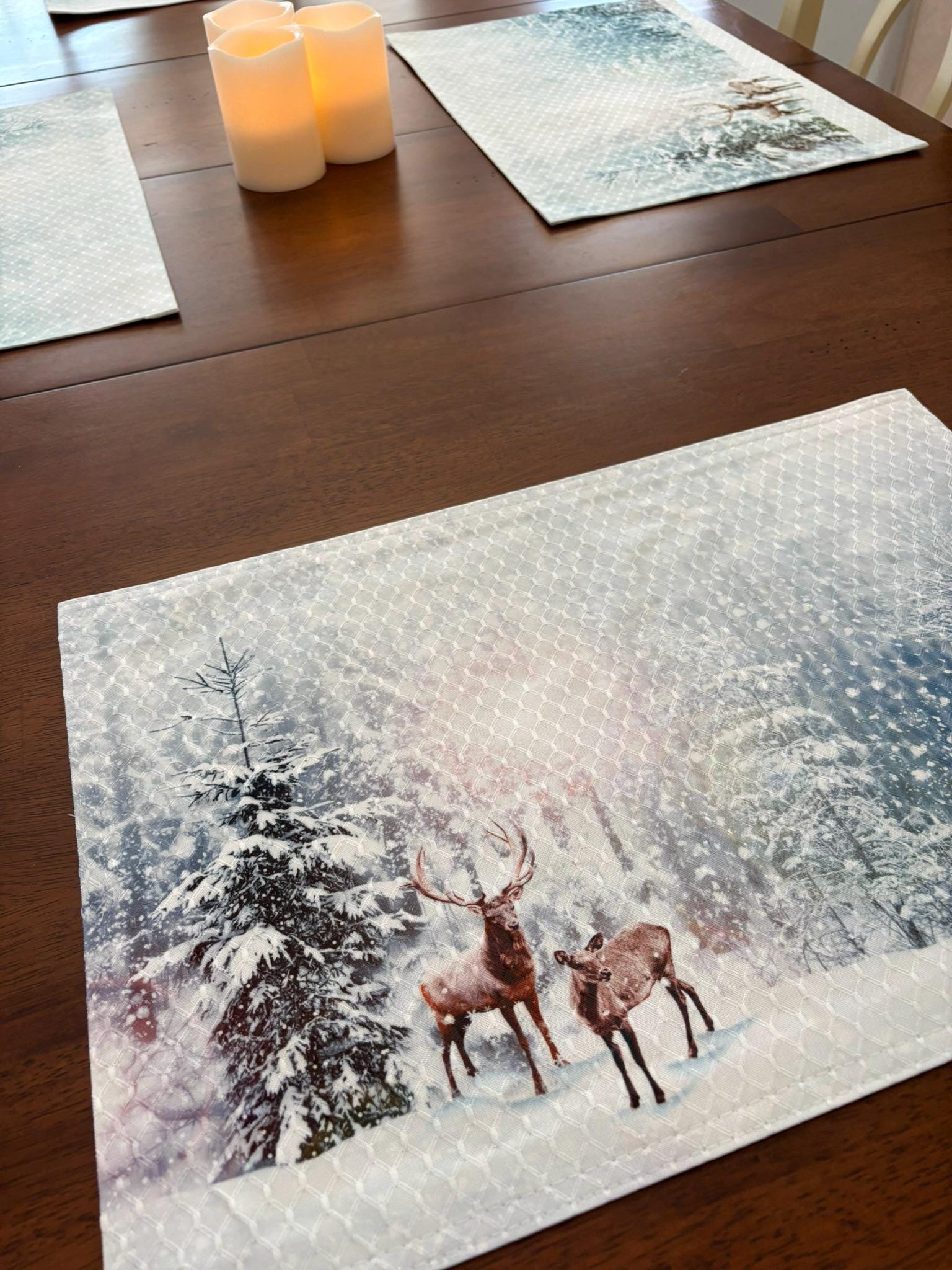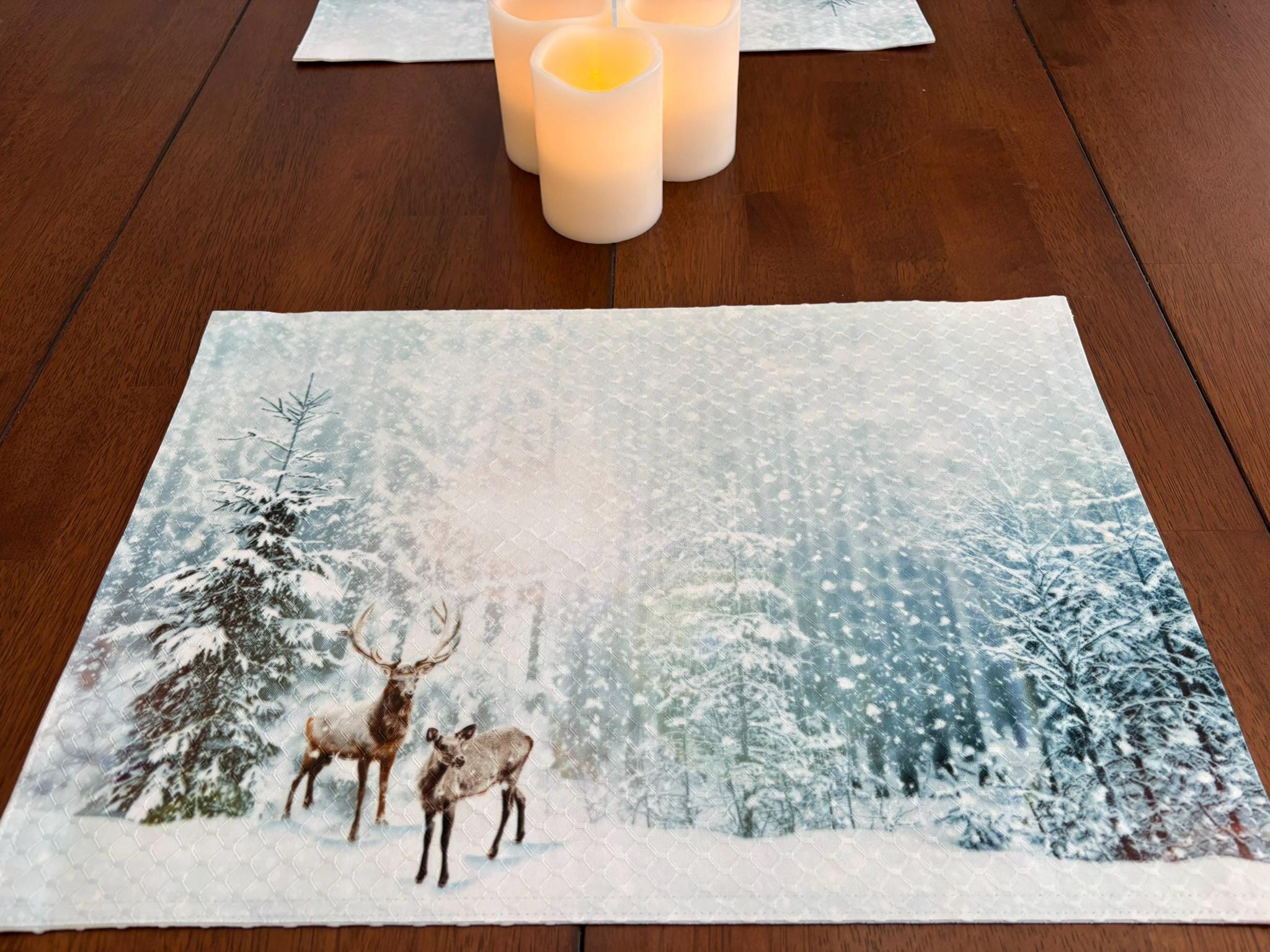 Deer in the Woods During Snowfall Placemat – Winter Seasonal Decor – Machine Washable Tumble Dry