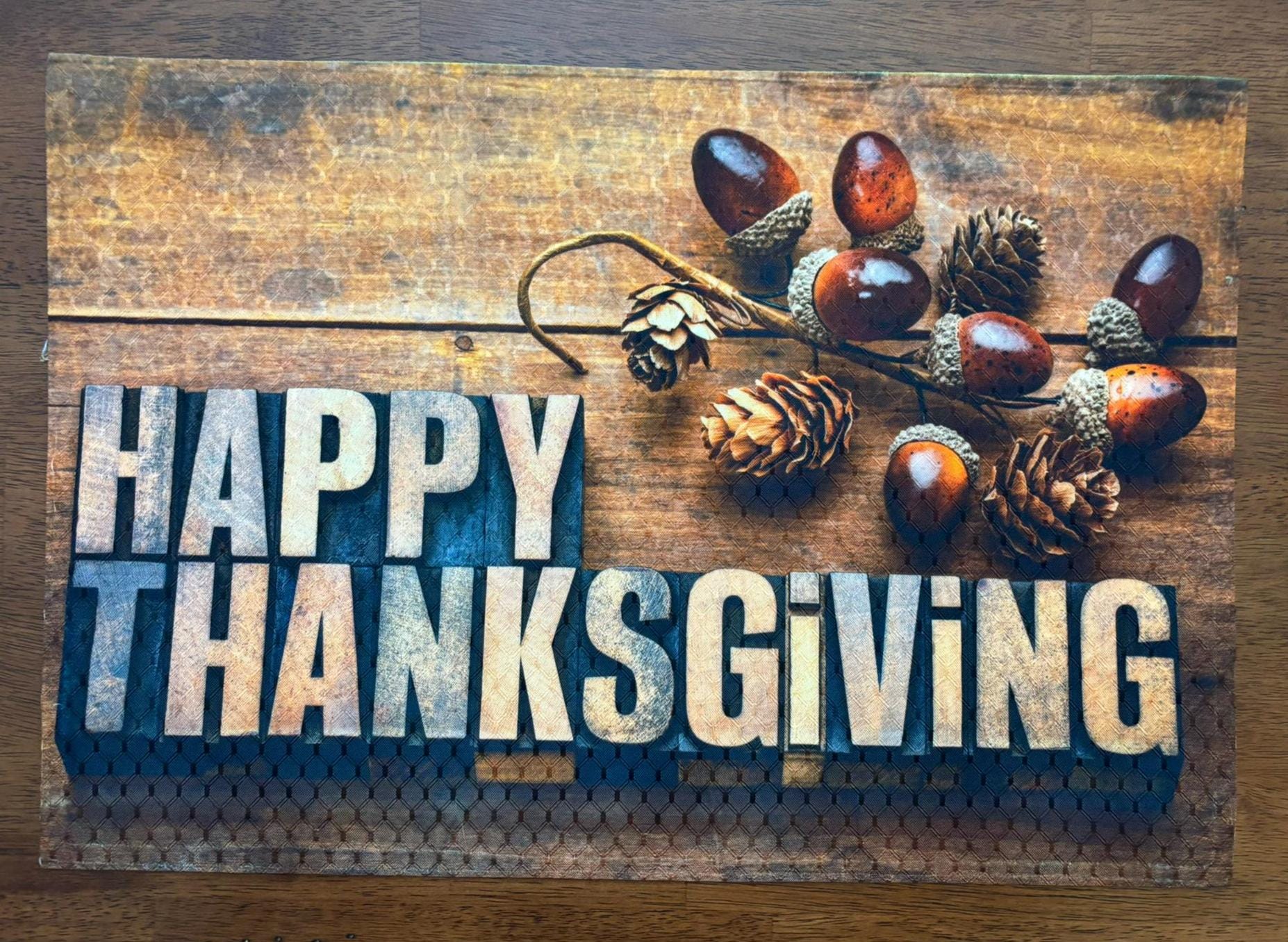 Happy Thanksgiving Placemat Wood & Nuts Design – Holiday Dining Decor