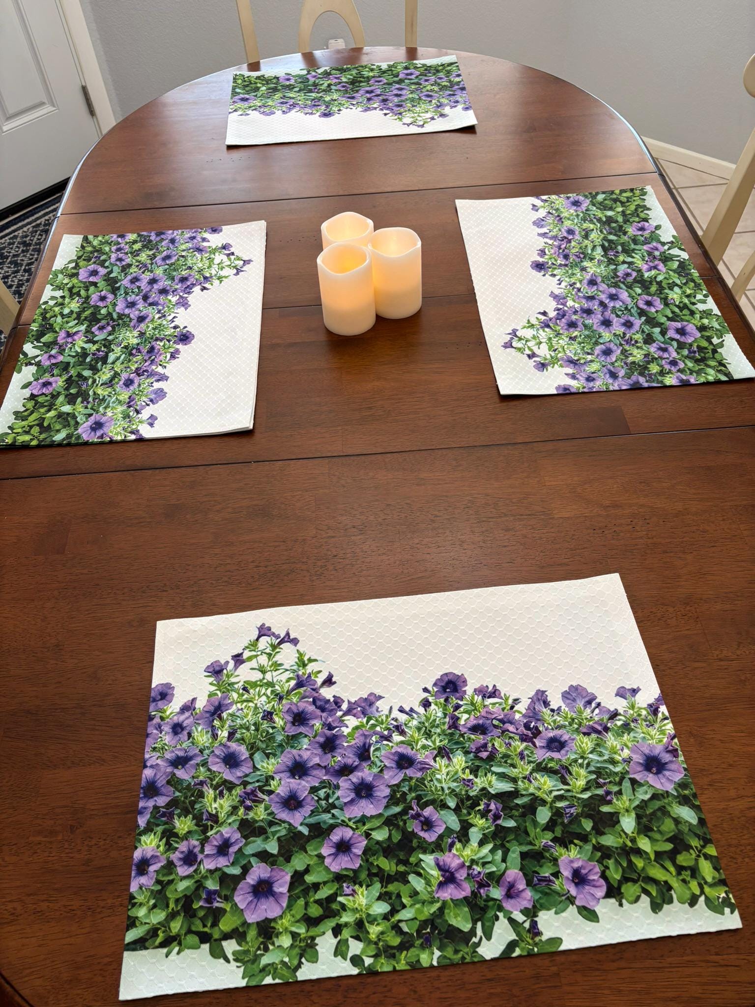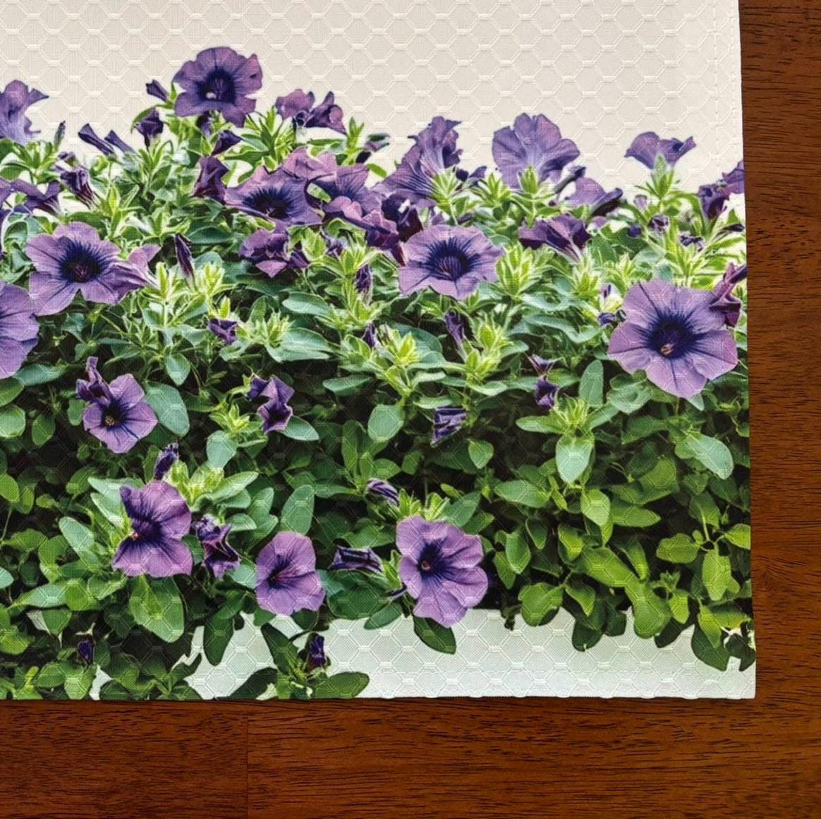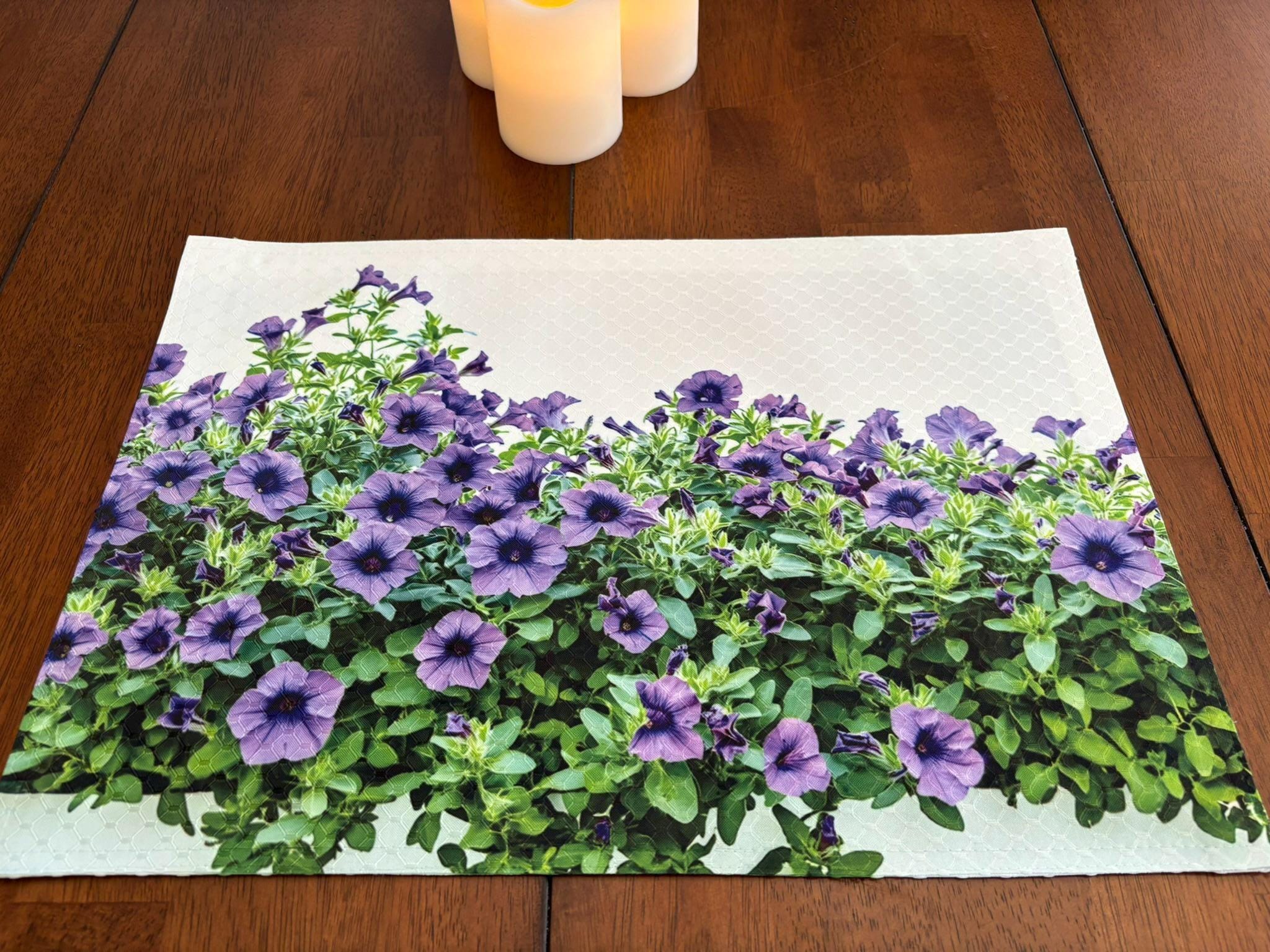Purple Petunias Placemat – Seasonal Decor – Machine Washable Tumble Dry Dining Table Placemat
