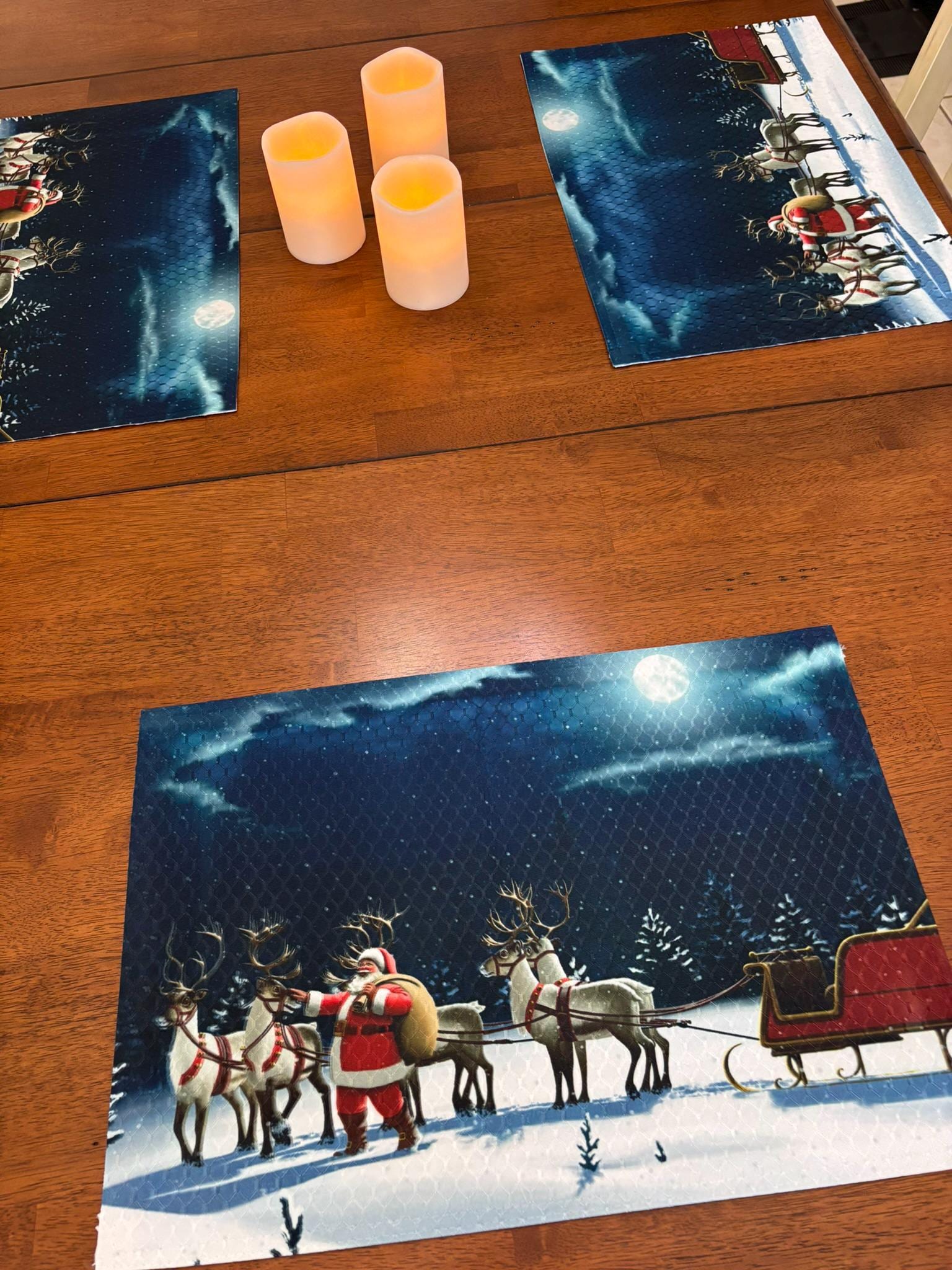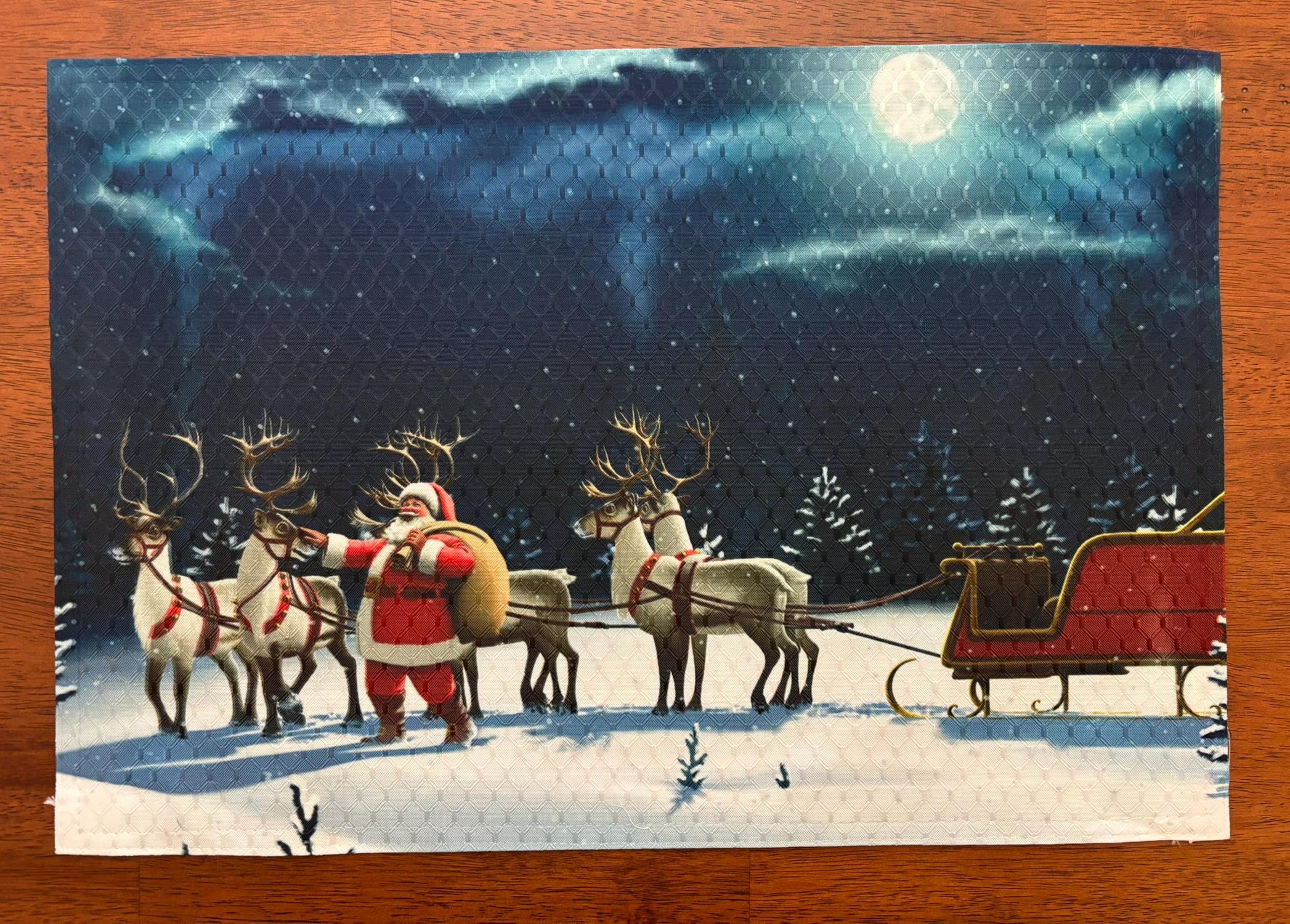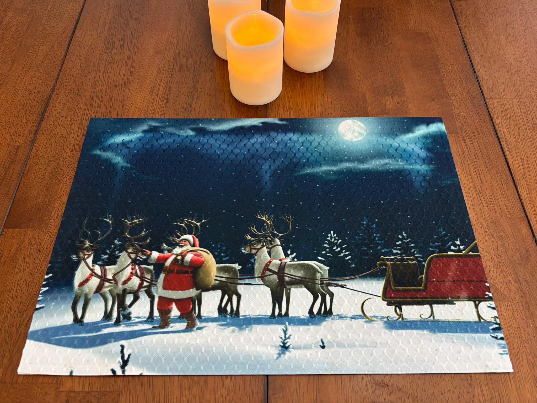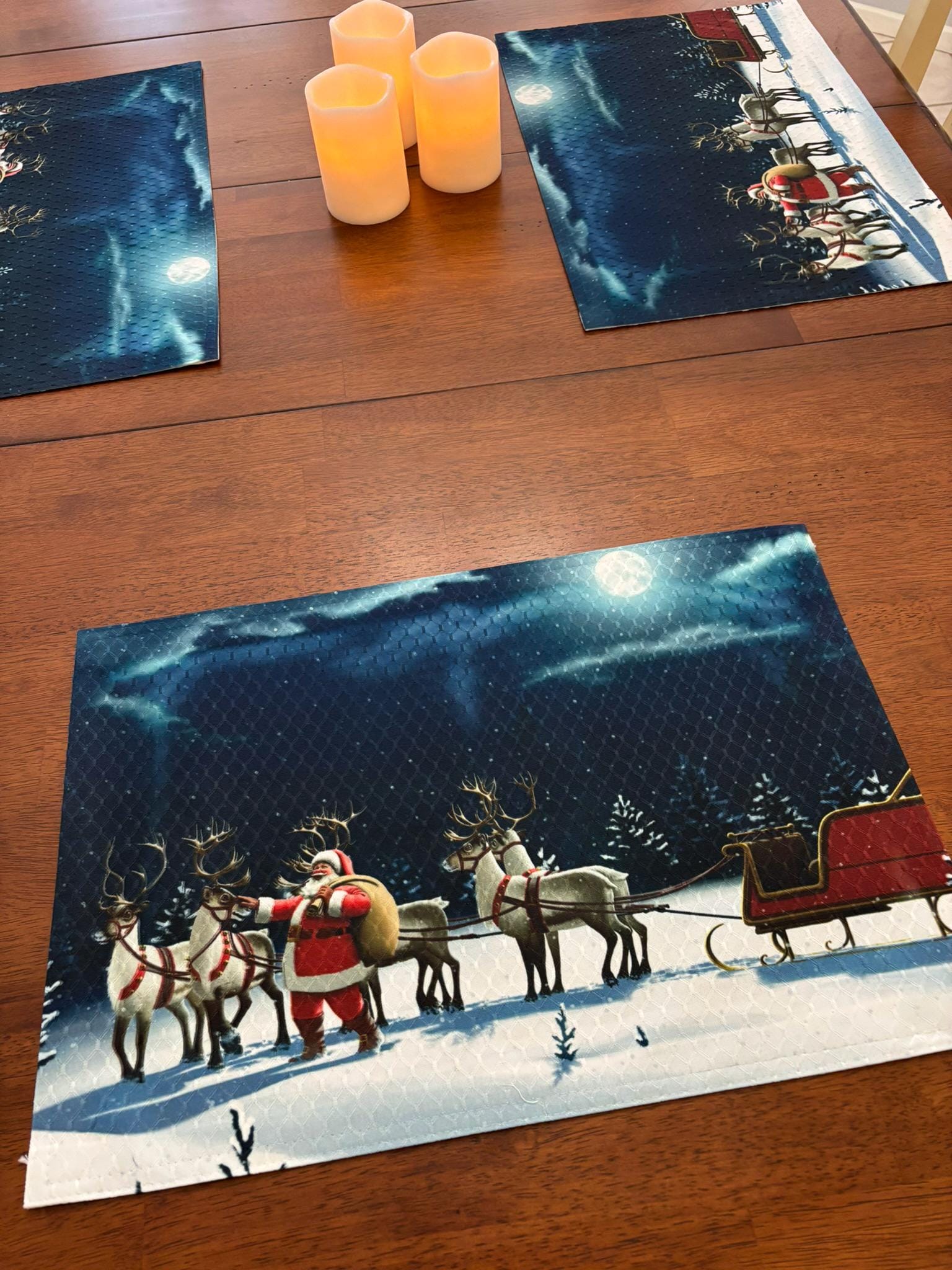 Santa Reindeer and Sleigh Placemat for Your Dining Table Machine Washable Upscale Dining Room Decor