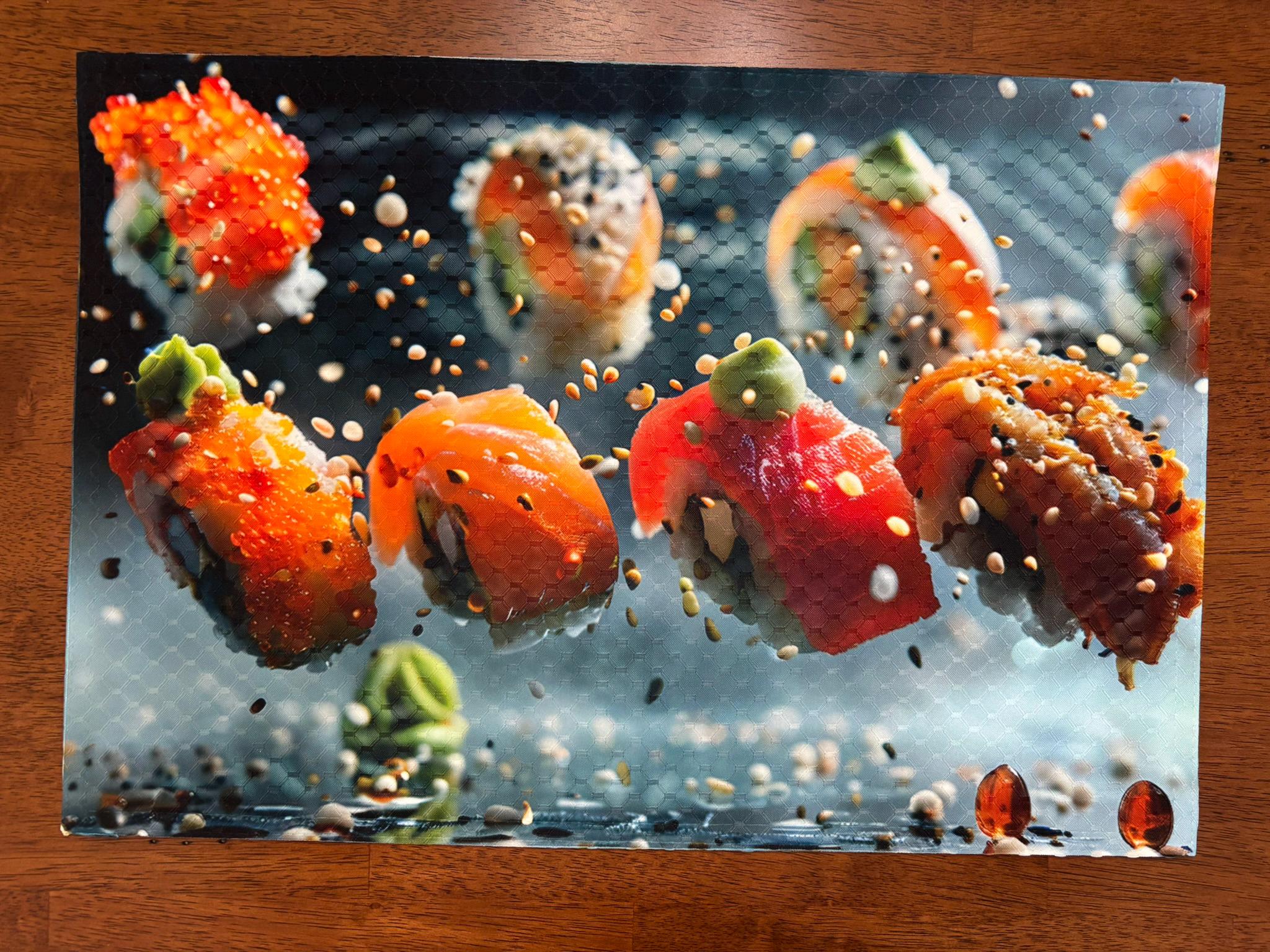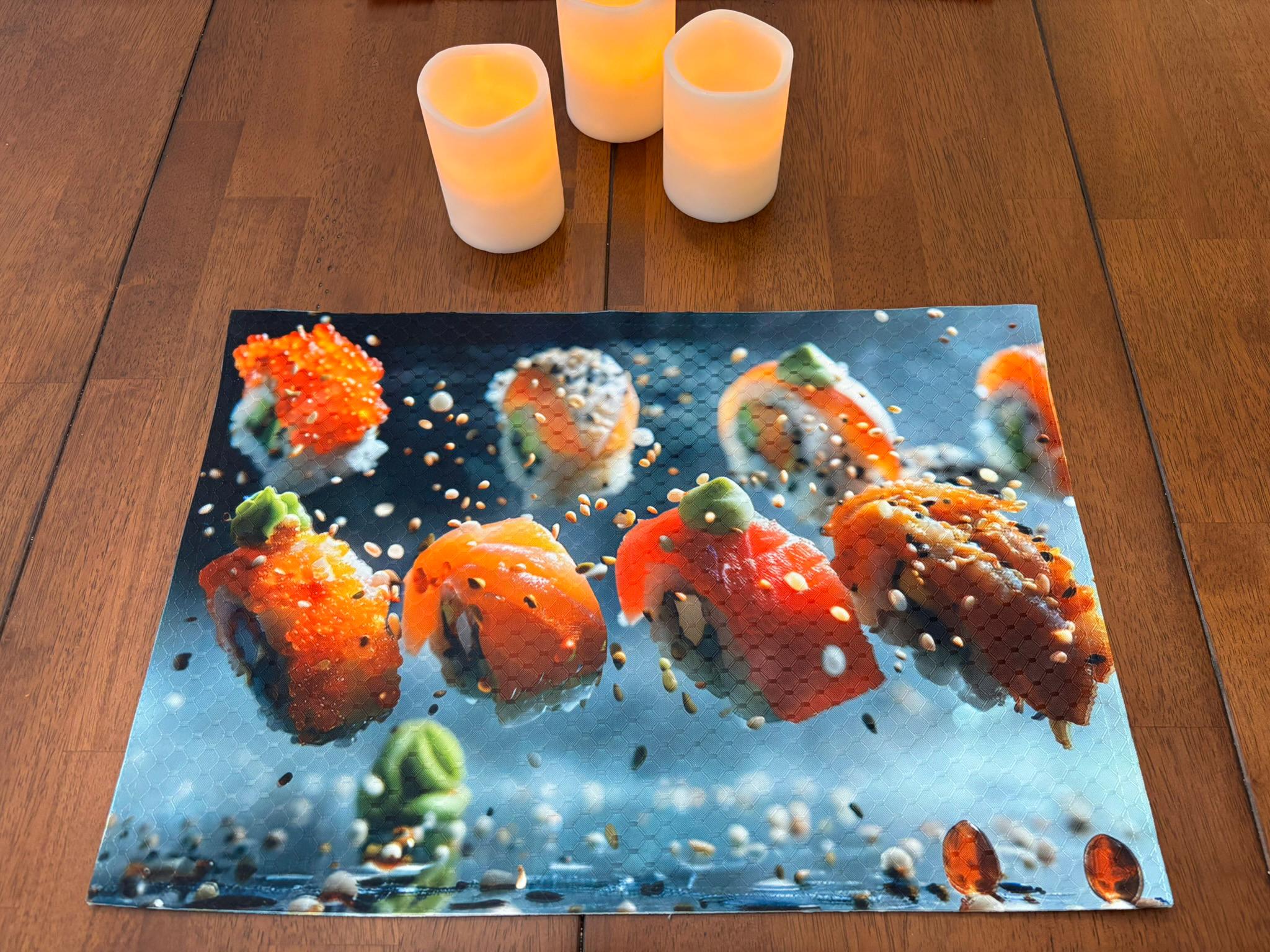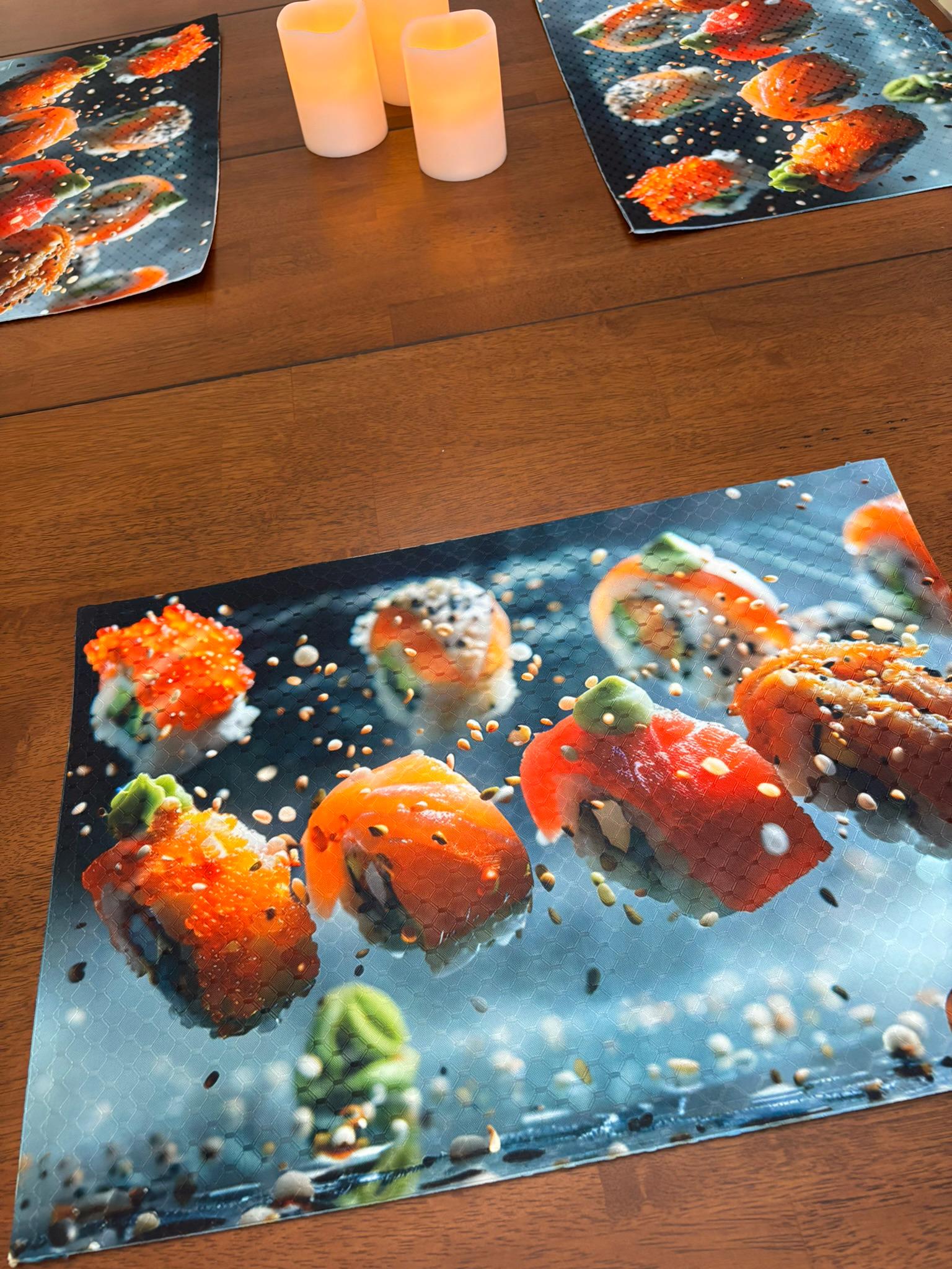 Sushi and Sashimi Airborne Placemat for Your Dining Table Machine Washable Tumble Dry Upscale Dining Room Decor